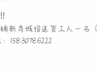 河北铺新商城招送货工人一名,有意者打图片上的电话咨询