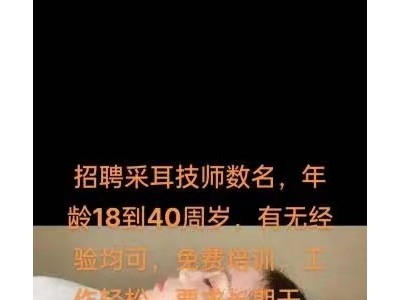 招聘采耳技师数名,年龄18到40周岁,有无经验均可,免费培训,工作轻松,要求长期干,三天打鱼两天晒网的勿扰,地址产业城金色家园底商,