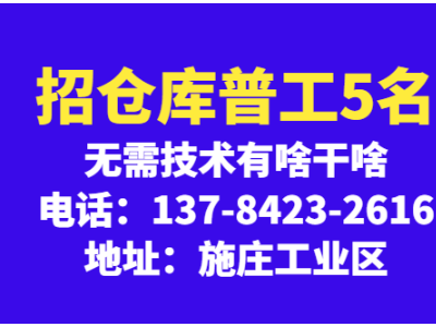 仓库普工5名(无需技术有啥干啥)
