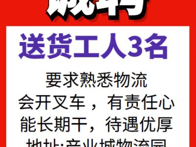 诚聘送货工人3名,‼️