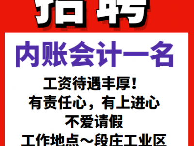 招聘内账会计一名,工资待遇丰厚!