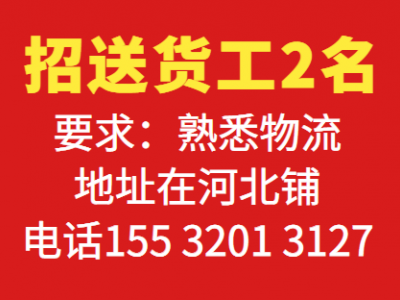 招送货工人2名,要求:熟悉物流;地址在河北铺
