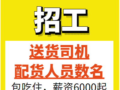 天津标准件门市招送货司机,配货人员数名,包吃住,薪资6000起,