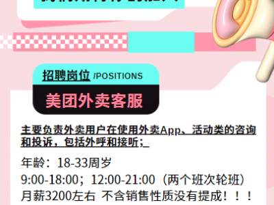 主要负责外卖用户在使用外卖App、活动类的咨询和投诉,包括外呼和接听;
