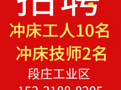 招聘:冲床工人10名、冲床技师2名