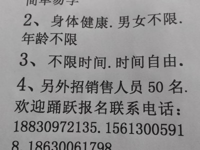 4另外招销售人员50名,欢迎踊跃报名,