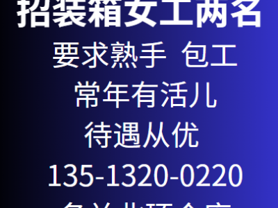 名关北环仓库招装箱女工两名 要求熟手 包工 常年有活儿 待遇从优