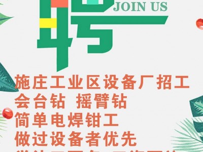 施庄工业区设备厂招工,会台钻,摇臂钻,简单电焊,钳工做过设备者优先,学徒工两名,工资面议