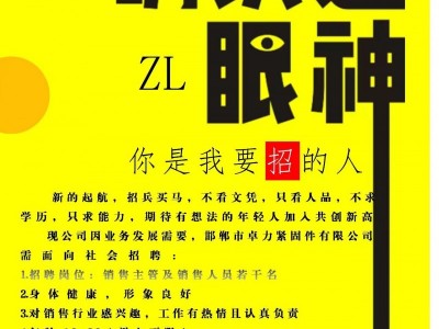 邯郸市卓力紧固件制造有限公司现诚聘: 销售人员若干名:踏实肯干,团队协作能力强
