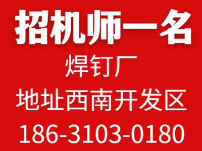 焊钉厂招机师一名,地址西南开发区