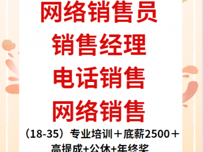 (18-35)专业培训+底薪2500+高提成+公休+年终奖