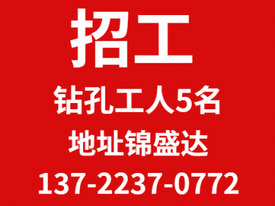 招聘:钻孔工人5名