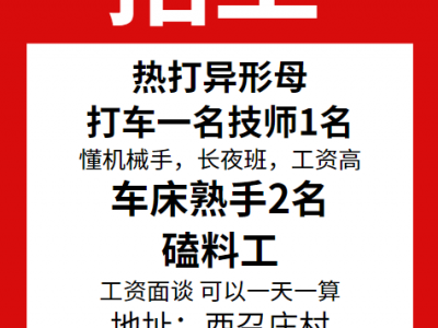 【招热打异形母,打车一名,技师1名懂机械手,长夜班,工资高】