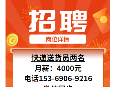 快递送货员两名4000元