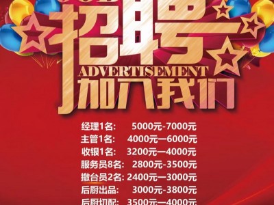 招聘经理、主管、收银、服务员、撤台员、后厨出品、后厨切配、后厨加工,上人员入职后公休3天!+全勤奖+绩效奖+工龄奖。一律包吃包住。张经理17121423222 17121425678