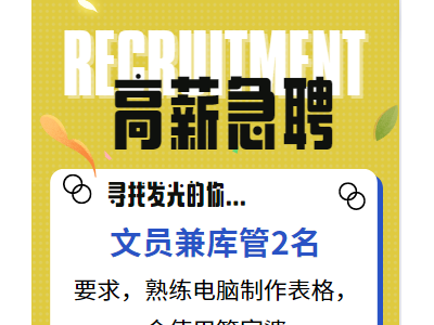 招聘文员兼库管2名,要求,熟练电脑制作表格,会使用管家婆或其它财务软件开票上账,月工资 3000 元以上,地址中原批发市场 35 排 1 号