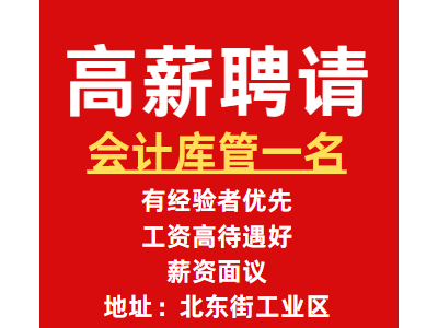 高薪聘请会计库管一名,有经验者优先