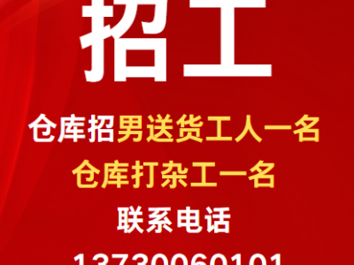 仓库 招 男送货工人一名 仓库打杂工一名