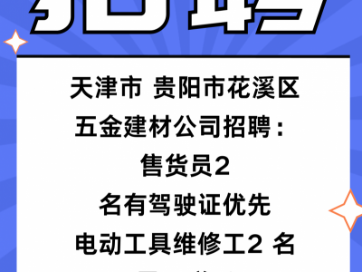 天津市、贵阳市花溪区五金建材公司招聘:售货员2 名有驾驶证优先,电动工具维修工2 名,需要联系