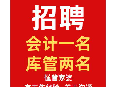 招聘会计一名、库管两名;