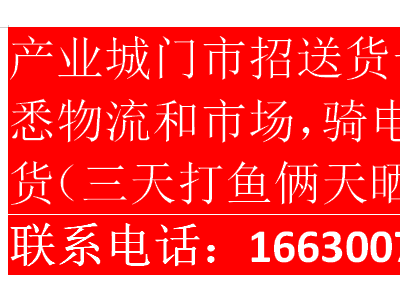 产业城门市招送货一名,熟悉物流和市场,骑电三轮送货(三天打鱼俩天晒网勿扰)