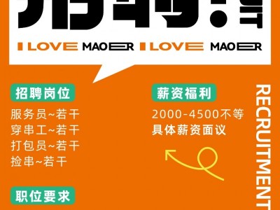 招聘服务员,烧烤穿串工,外卖打包员