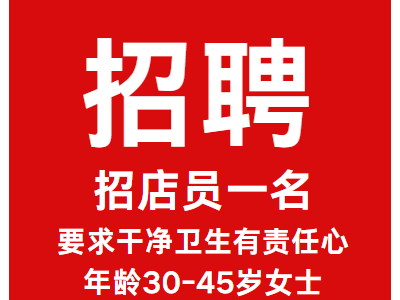招聘,永年太极广场老诸板面招店员一名,要求干净卫生有责任心,年龄30-45岁女士。