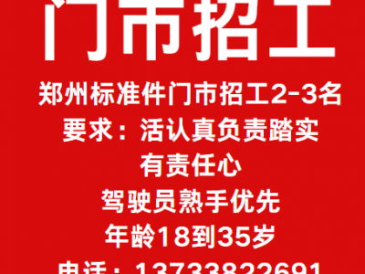 郑州标准件门市招工2-3名