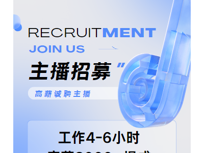 高薪诚聘主播,工作4-6小时,底薪3000+提成公休1天,年龄18-45岁,公司免费培训,易上手,会聊天就能胜任,小白也可以,面试地址:建材市场白安家具4楼