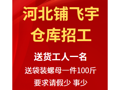 河北铺飞宇仓库找送货工人一名,送袋装螺母一件100斤,要求请假少,事少,非诚勿扰!