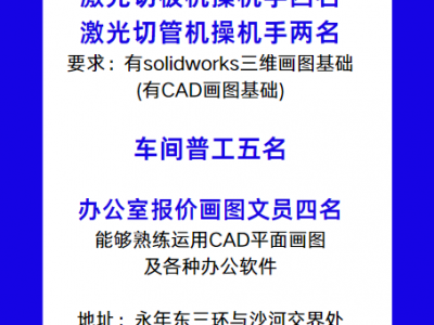激光切管机操机手两名