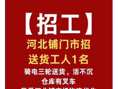 河北铺门市招 送货工人1名,骑电三轮送货,活不沉仓库有叉车,熟悉河北铺市场物流优先!