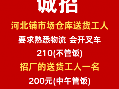 招厂的送货工人一名,200元(中午管饭)