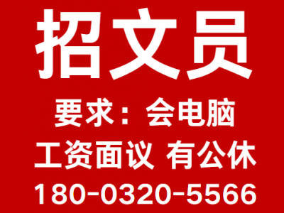 招聘文员一名,要求会电脑