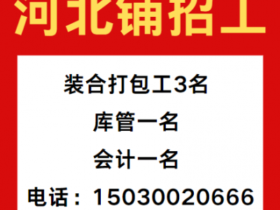 河北铺招工 装合打包工3名 库管一名 会计一名