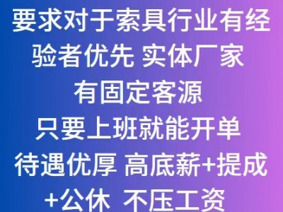 要求对于索具行业有经验者优先 实体厂家 有固定客源 只要上班就能开单