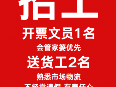 招工:送货工 2名熟悉市场物流不经常请假有责任心事情多勿扰
