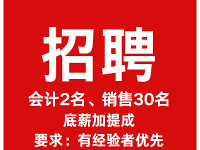 招聘会计2名、销售30名、底薪加提成