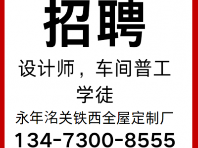 招聘设计师,车间普工,学徒。
