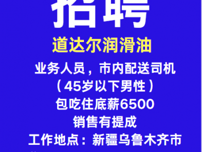 道达尔润滑油招聘业务人员,市内配送司机(45岁以下男性)