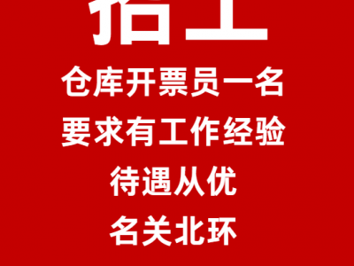 招仓库开票员一名