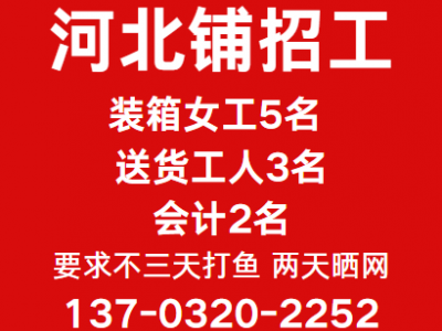 河北铺 招工: 装箱女工5名 、送货工人3名、会计2名