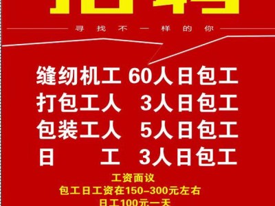常年招聘缝纫吨包工人,时间自由,中午管一顿饭。