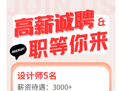 招聘:设计师5名,薪资待遇:3000+