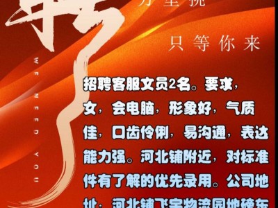 多岗位招聘:开票文员3名。河北铺附近。女,会电脑,形象好,气质佳,口齿伶俐,易沟通表达能力强。对标准件有了解者优先录用。公司地址:河北铺飞宇物流园《欣冉物流