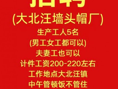 招聘(大北汪墙头帽厂)