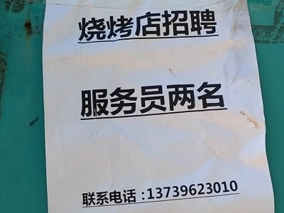 永年区产业城地地道道烧烤招聘服务员三名,钟点工也可以,电话