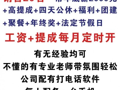 河北清然荣晨金属制品有限公司招聘:主管一名;销售20名,常年底薪2000元+高提成+四天公休+年终奖+法定节假日等,工资+提成每月定时开