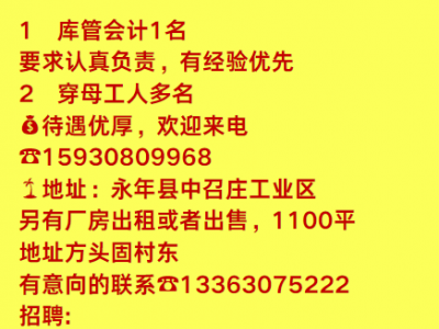 本公司招库管一名,年龄18-38岁,工作认真负责。