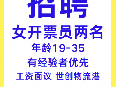世创物流港招:女开票员两名